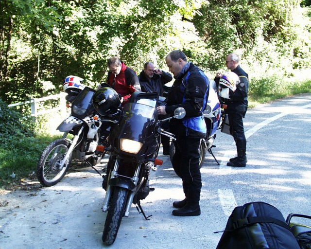 Erste Zwischenstation war bei Thomas. Hier trafen sich Mike, Deti, Jimmy und Joschi um am nächsten Morgen gemeinsam aufzubrechen.